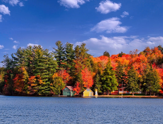 Autumn Leaves Yellow Boathouse ADK Adirondacks