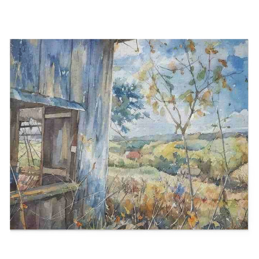 Abandoned Barn Watercolor 500-Piece Jigsaw, Nature Theme, Relaxing Activity, Great Gift for Puzzle Lovers, Indoor Activity